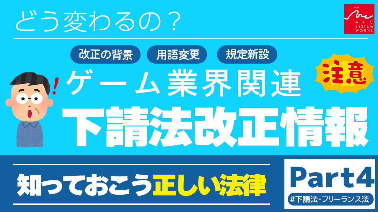 このシリーズでは、ゲーム開発とも深く関わる「下請法」と「フリーランス法」について解説しています。