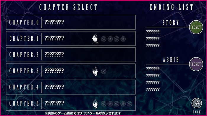 エンディングを左右する分岐ポイントの状態は[RESET]からリセットできますのでご活用ください。